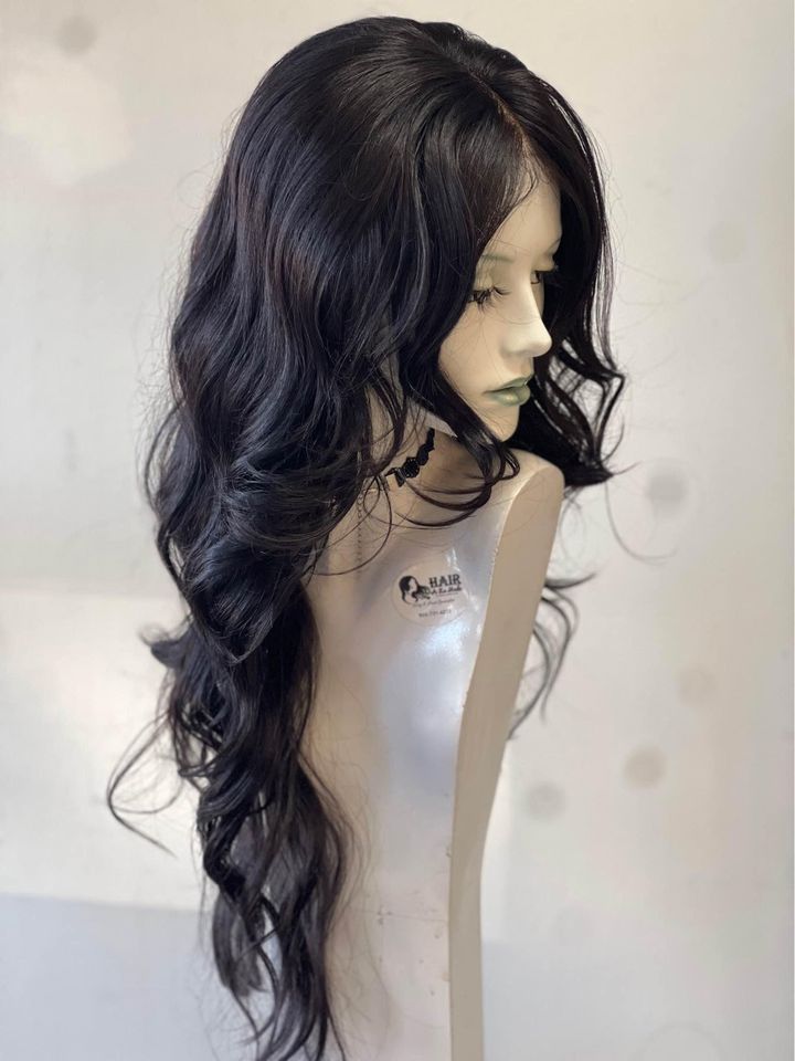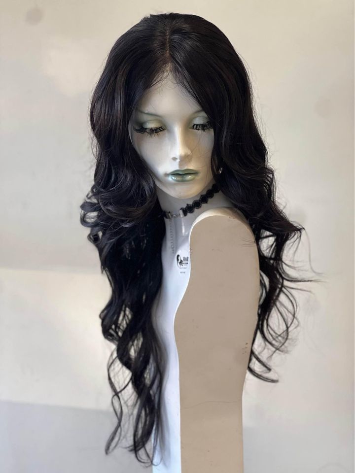 Long synthetic full wig with lace part